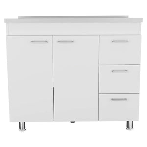 - Features a stainless steel countertop (39.37" W x 20.67" D) made of resistant particleboard