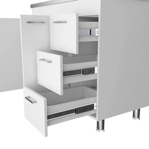 - Features 3 drawers (12.1" W x 8.5" H) for kitchen supplies
