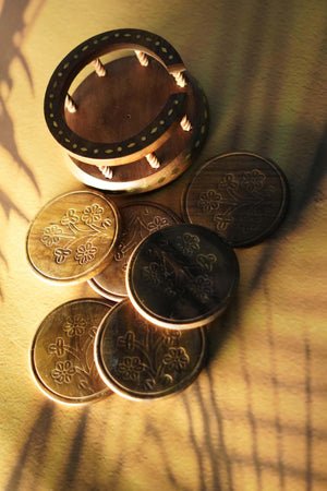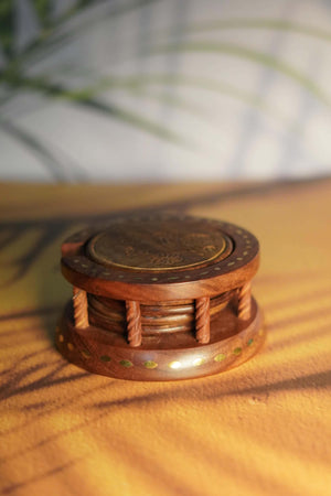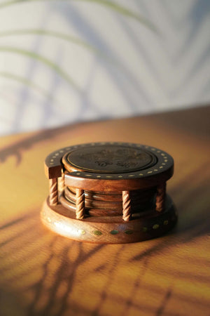 Bring a touch of nature indoors with this set of handcrafted wooden coasters. The coasters feature intricate floral designs, showcasing the artistry of skilled artisans. The accompanying wooden stand adds a touch of rustic charm.