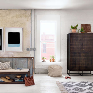 Niklered Carved Teak Wood Tall Cabinet - craft decor