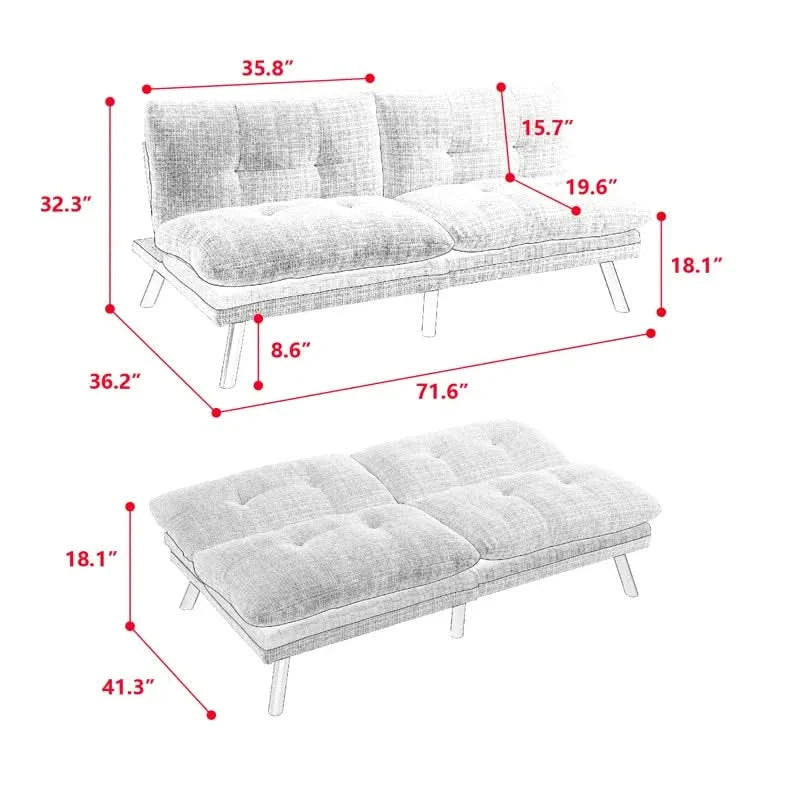 The adaptable sleeper sofa's thin, beveled arms, which are tastefully accentuated with French seams, allow it to be used as a comfy bed for overnight visitors or as a chic seating choice during the day. It is around the size of a typical twin mattress lying flat, making it ideal for places with limited space, including apartments and college dorms. You may simply match it to the design of your home because there are eight different color possibilities for the fabric.