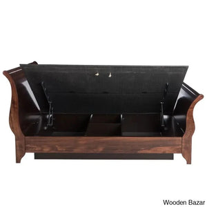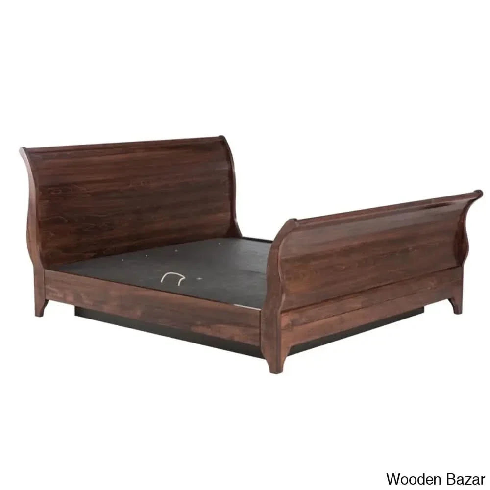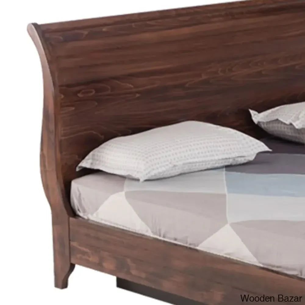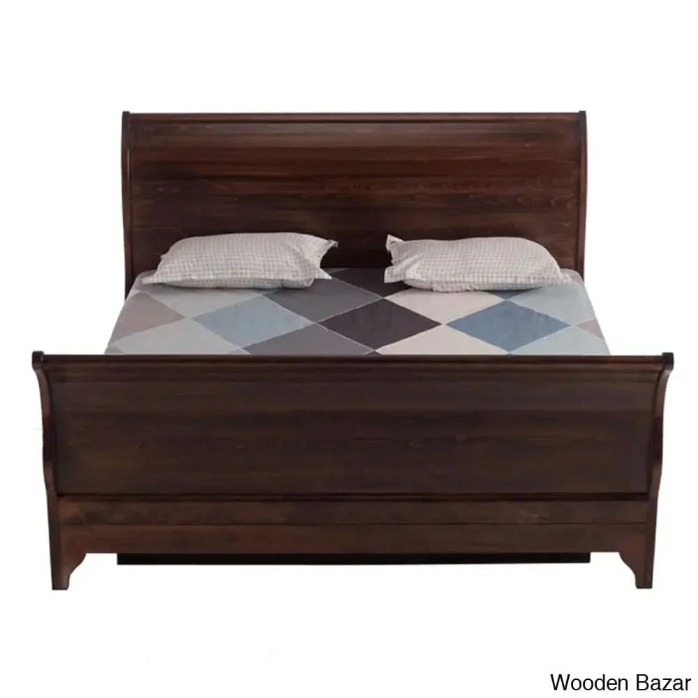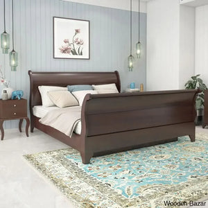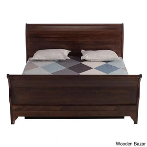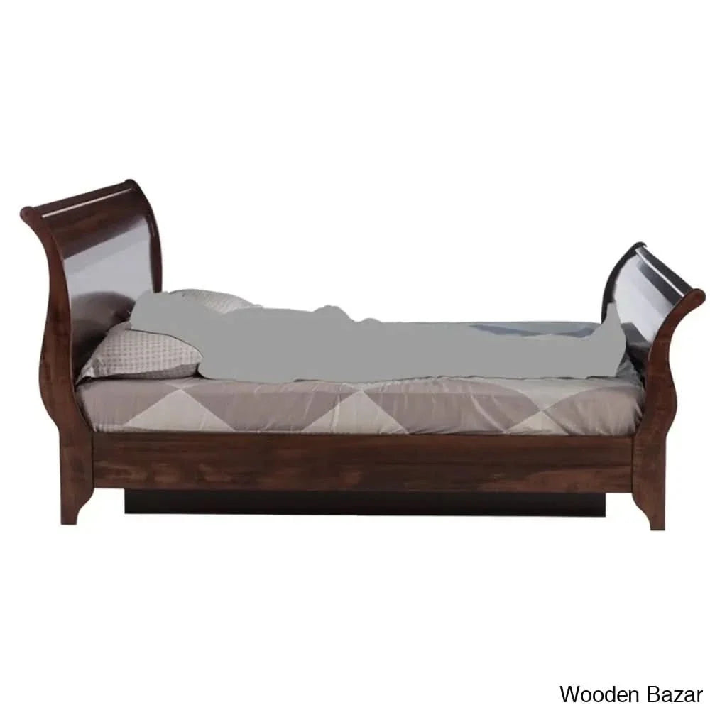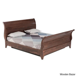 The craft decor collection's elegantly curved curves evoke the timeless style of mid-century modern architecture. The high-backed headboard and footboard of the sleigh-style bed are surrounded by beautiful solid wood. With its stunning Walnut veneer finish, it adds a timeless touch to your bedroom.