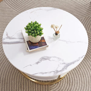 CRAFT DECOR Engineered Wood Top with Marble Finish Indiana Bowed Round Coffee Table for Living Room | Office | Restaurant