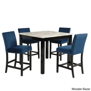 Quirke 4 Seater Counter Height Marble Top Dining Table Set