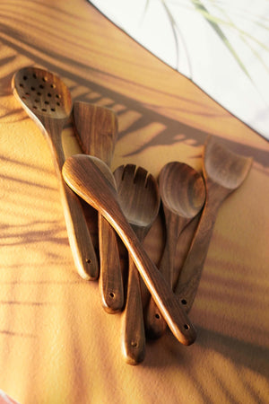 Rustic Elegance: Handmade Premium Wooden Spoon (Set of 6)