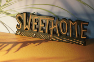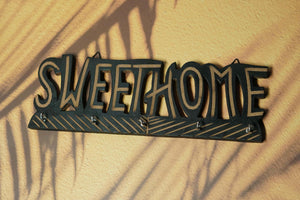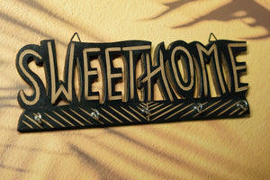 Add a touch of personality to your home with this unique wall-mounted key rack. The eye-catching typography of the "Sweet Home" sign is sure to make a statement, while the practical hooks keep your keys neatly organized. This key holder is a must-have for any busy household.
