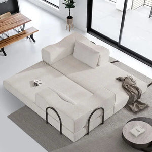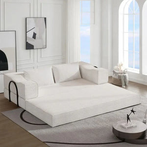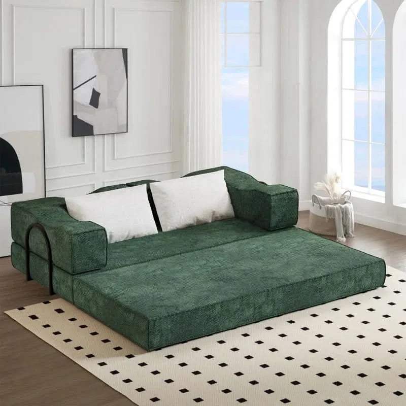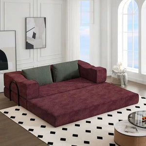 This sofa bed's versatility, adaptability, and modification allow you to create a sofa that suits your needs, which is what makes it so beautiful.You can adjust and match both armrests to your desired arrangement.
