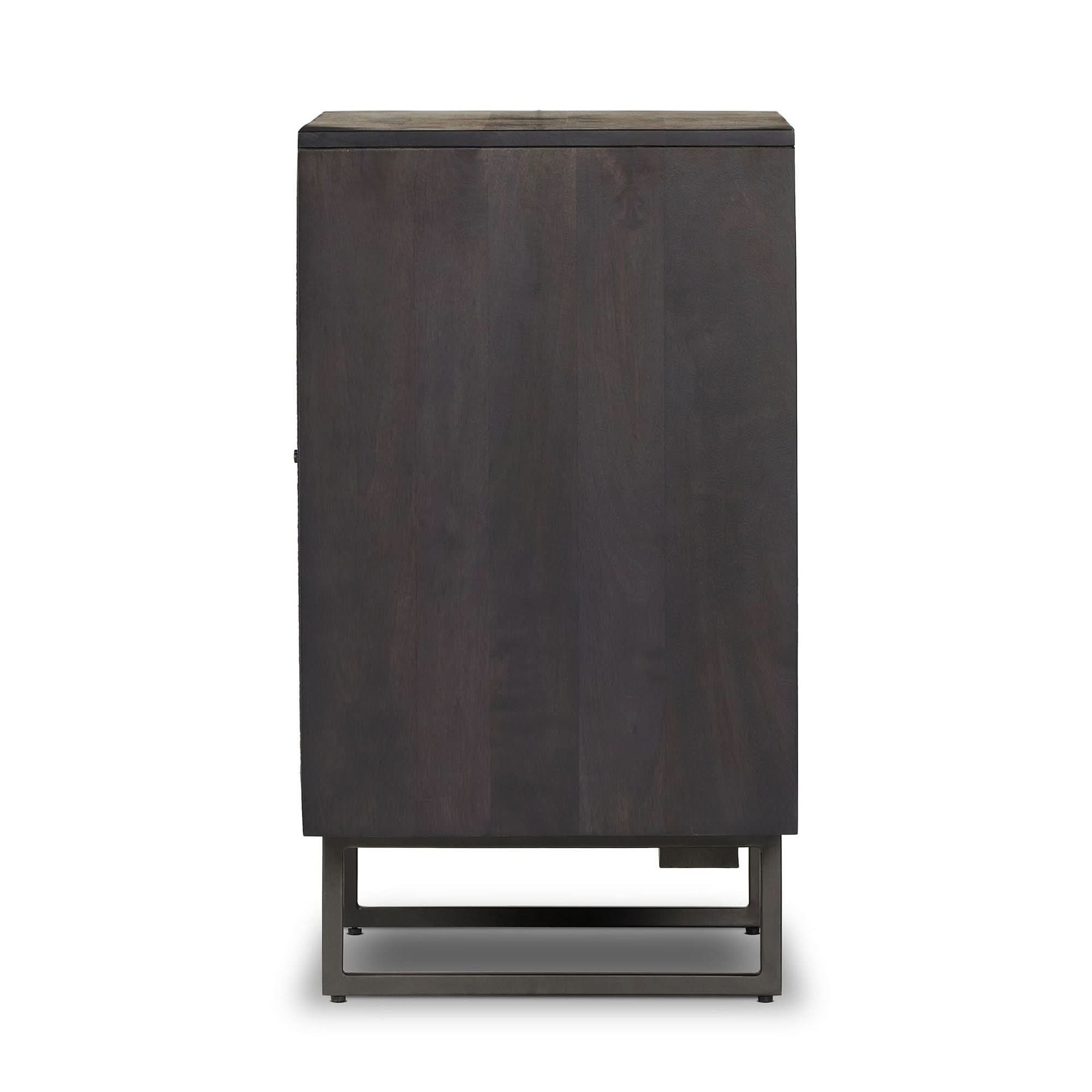 - Iron legs and door hardware in a Charcoal Gray finish.