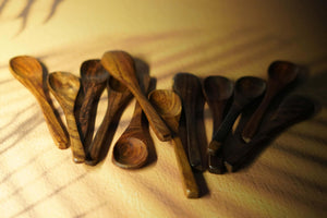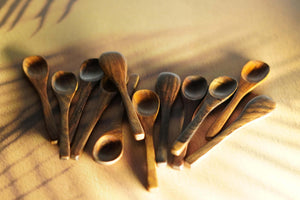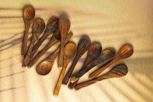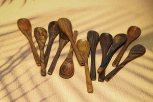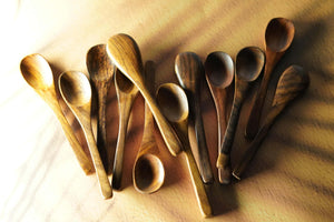 Handcrafted Teak Wood Spoon Set: This set of twelve wooden spoons is handcrafted from beautiful teak wood. Each spoon is unique and has a natural variation in color and grain. The spoons are perfect for stirring, serving, and enjoying your favorite foods.