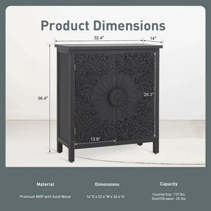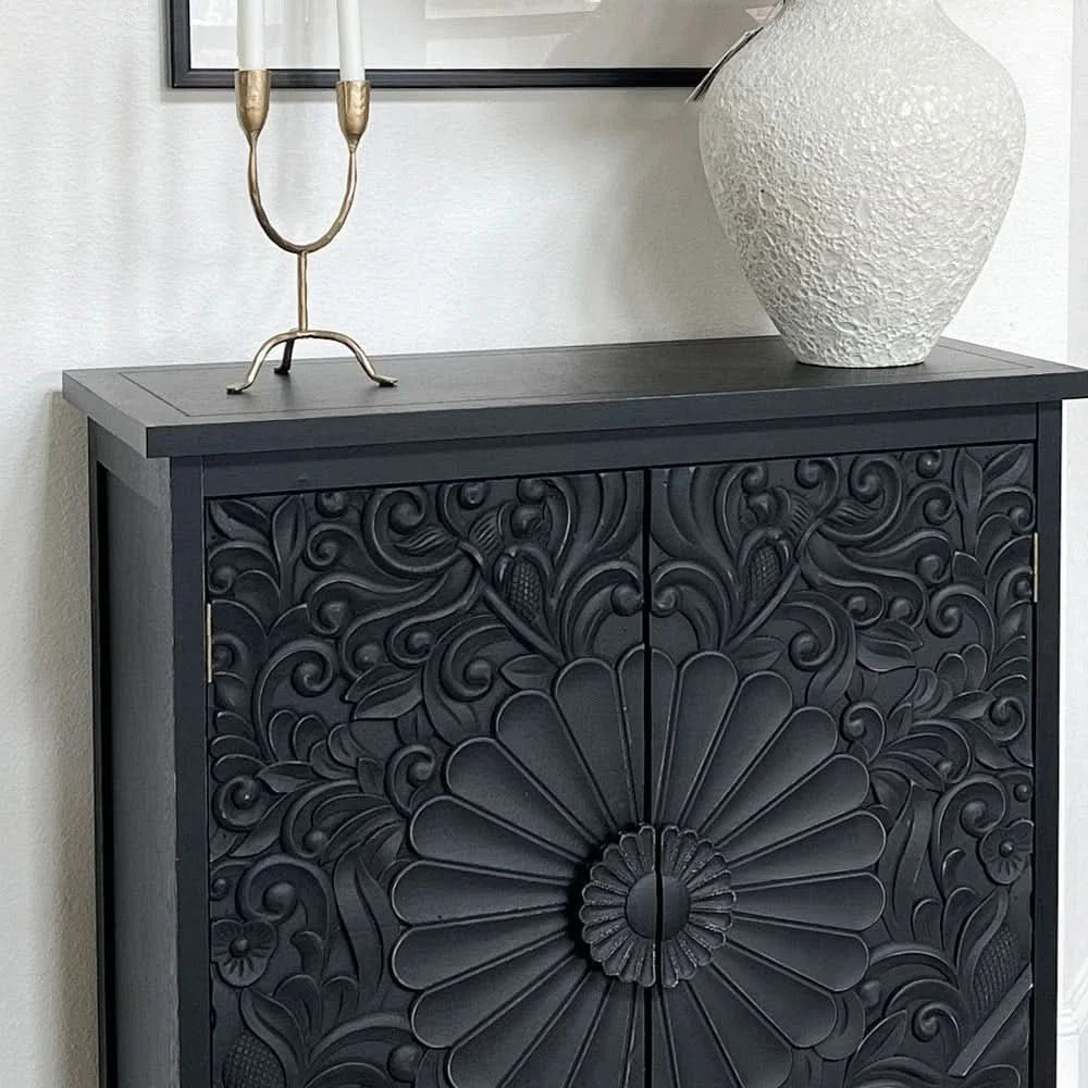 Exquisite Appearance: The cabinets have a distressed effect and are finished in elegant black.The doors are covered with delicate carvings. The flower-carved handles are both stylish and beautiful. It will brighten your bedroom and bathroom, not only as furniture, but also as home decoration.