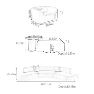 | Sofa | 25.59'' H X 149.61'' W X 33.47'' D |