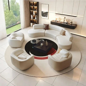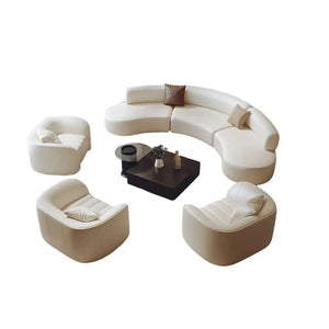 Walko Semi-circular Curved Shaped Movable Corner Sofa 4 Piece Faux Leather Living Room Luxury Sofa Set