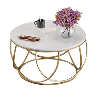 CRAFT DECOR Gilded Globe Design Round Coffee Table with Marble Top-Like Finish Combines Contemporary Design with Timeless Charm to Elevate Any Room