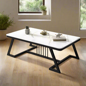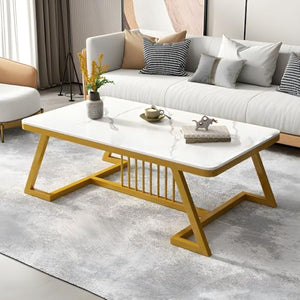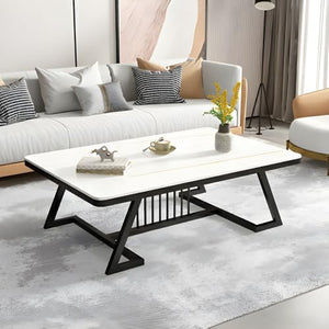 CRAFT DECOR Stylish Rectangular Coffee Table with Marble-Like Finish Modern & Elegant Center Table for Living Room, Durable & Sturdy Space-Saving Home