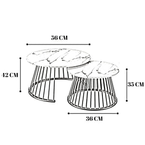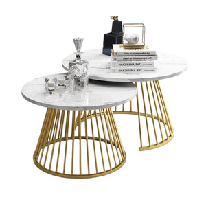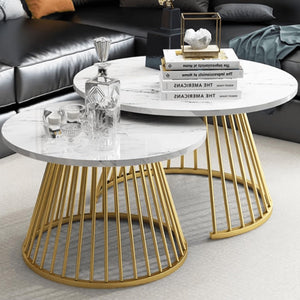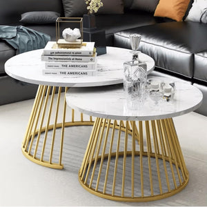 CRAFT DECOR Ornate Circular Design Round Coffee Table Set of 2 with Marble Top-Like Finish Long-Lasting Quality and Reliable Support for a Modern & Elegant Living Room